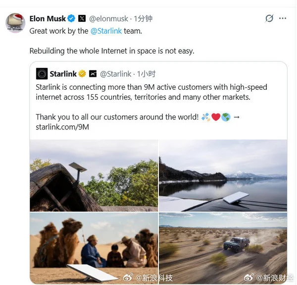 根據星鏈發布的信息,目前其高速互聯網服務已覆蓋全球155個國家、地區和許多其他市場。從用戶增長軌跡來看,星鏈的發展速度驚人。公開資料顯示,其用戶數在2022年底約為100萬,到2023年9月超過200萬,并在2024年5月突破了300萬。進入2025年,增長進一步加速,先后突破了600萬、700萬和800萬用戶大關。此次達到900萬用戶,意味著在短短數月內又新增了約100萬用戶。
