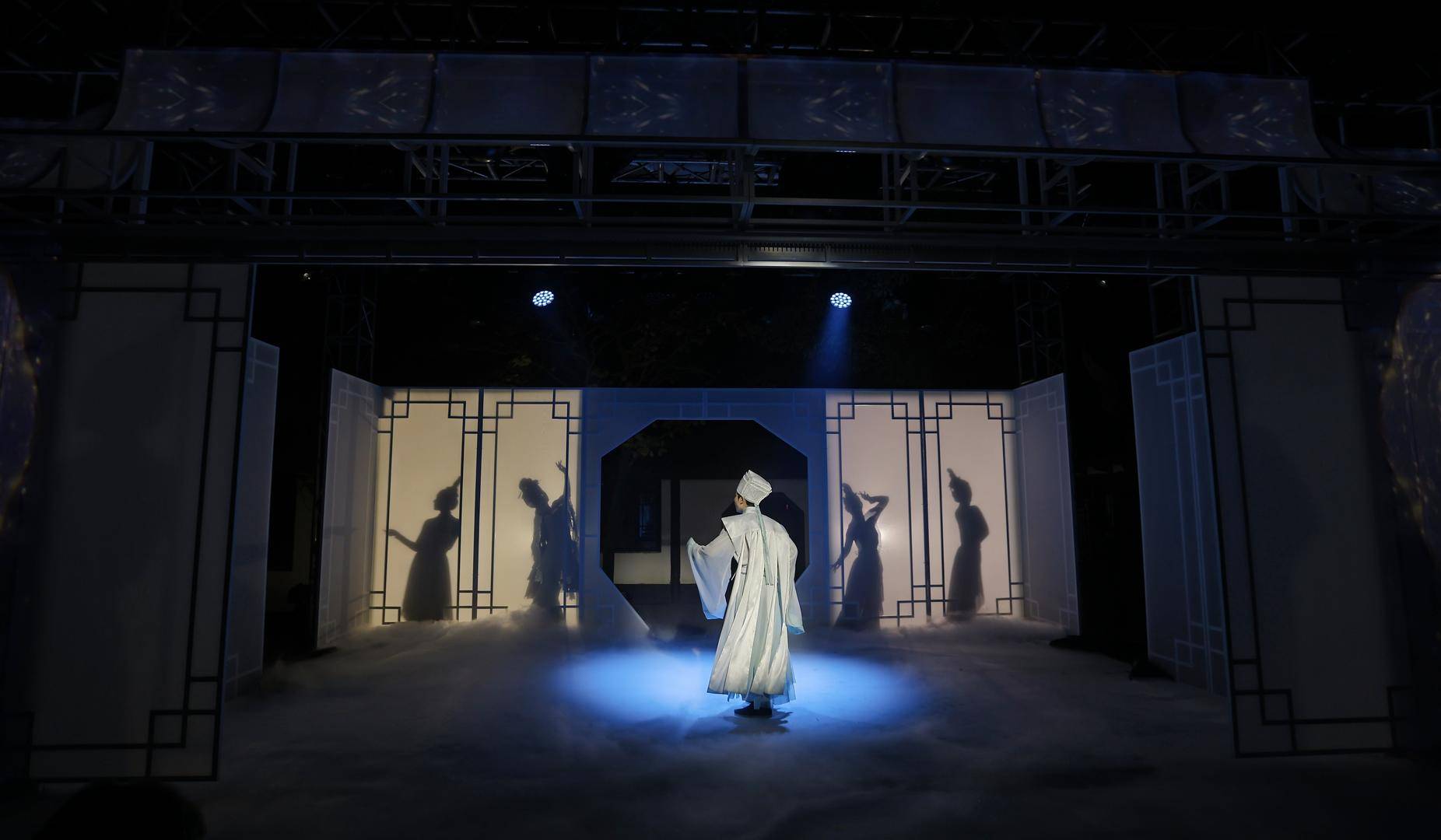 《第十一年》舞劇以蘇軾與結發妻子王弗的故事為靈感,還原一場生命中的失去與釋然。故事發生在蘇軾自請外放后,生活與工作的不順使他憂心忡忡。月下,他結束繁忙公務后于庭院散步。一片飄落的花瓣不經意撬開記憶的閥門,展開穿越現實與夢境的內心旅程。他回想起與王弗相伴的十一年:相識的愛慕、相伴的平凡、死別一刻的冰冷破碎。這一切對家的記憶在她逝去十年后,終難釋懷。